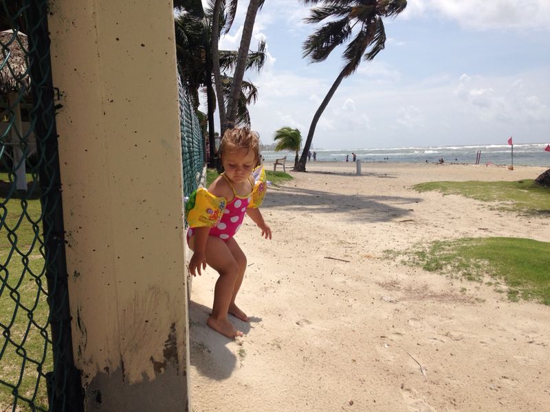 Sofia, with the help of her floaties, has become very comfortable in the water and is really learning how to swim. During our weekend, Katiuska said that she has never seen this particular part of the sea with waves..the whole weekend, the foamy waves just outside of the coral reef were constant. It was rainy and windy and wild…the girls and I went in the ocean anyway. The water is SO warm and cozy, it was fun being rained on while warmed up by the salty sea at the same time.