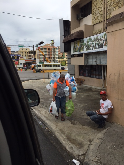 Now, just in case I start ever feeling any kind of “woe is me” thing, from something as incredibly minor as having to drive our truck over a bumpy road…we see so many people here who work hard…who are doing what they can to feed a family, patch a huge hole in a window, make their way. It always puts things in perspective, and humbles me. The fellow in this picture is loaded up with containers and bottles that I am guessing he takes somewhere in exchange for a few pesos. Every day, we see many people on the road working really hard — mules laden with plantains, women balancing enormous baskets of produce on their heads, men at the stoplight with sunglasses, lollipops and goldfish for sale. May those of us who can, share what we have – this season, and at all times.