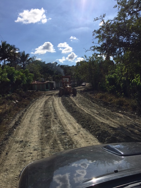 On the way home, we were flabbergasted by a jaw dropping surprise and gift to our lives off the grid: You remember when I shared that our drive to the farm includes about 25 minutes of an unpaved, deeply potted road? Most of the drive includes truly magnificent views of nature at its finest, with meandering rivers and steep pastured hills rising up from the waters, so that helps us accept the 10-20 mph pace. As you’re driving and admiring the views, though, you must constantly watch the road and maneuver around holes and mini avalanche cut drop offs such as the one here in this pic by the river. We had semi-accepted it as part of life here, though, and had learned to ignore the weekly rumors that “Now They will fix the road…They are coming to make the road…” Mmmm hmmm… So imagine our shock when we turned a corner and– it was like something out of a movie when the Saviors of Something suddenly appear over a desert scene to save the lost man on his last drop of water in an empty flask. Well, it’s not that extreme, but just get a sense of the kind of music that would be playing in the background of that kind of movie scene (“Taaaaa-daaaaaaa!!!!! Ba-buhhhhhhmmmmm!!!!! Da da da da!” type of thing) and add it onto our scene and that’s how we felt when we saw: