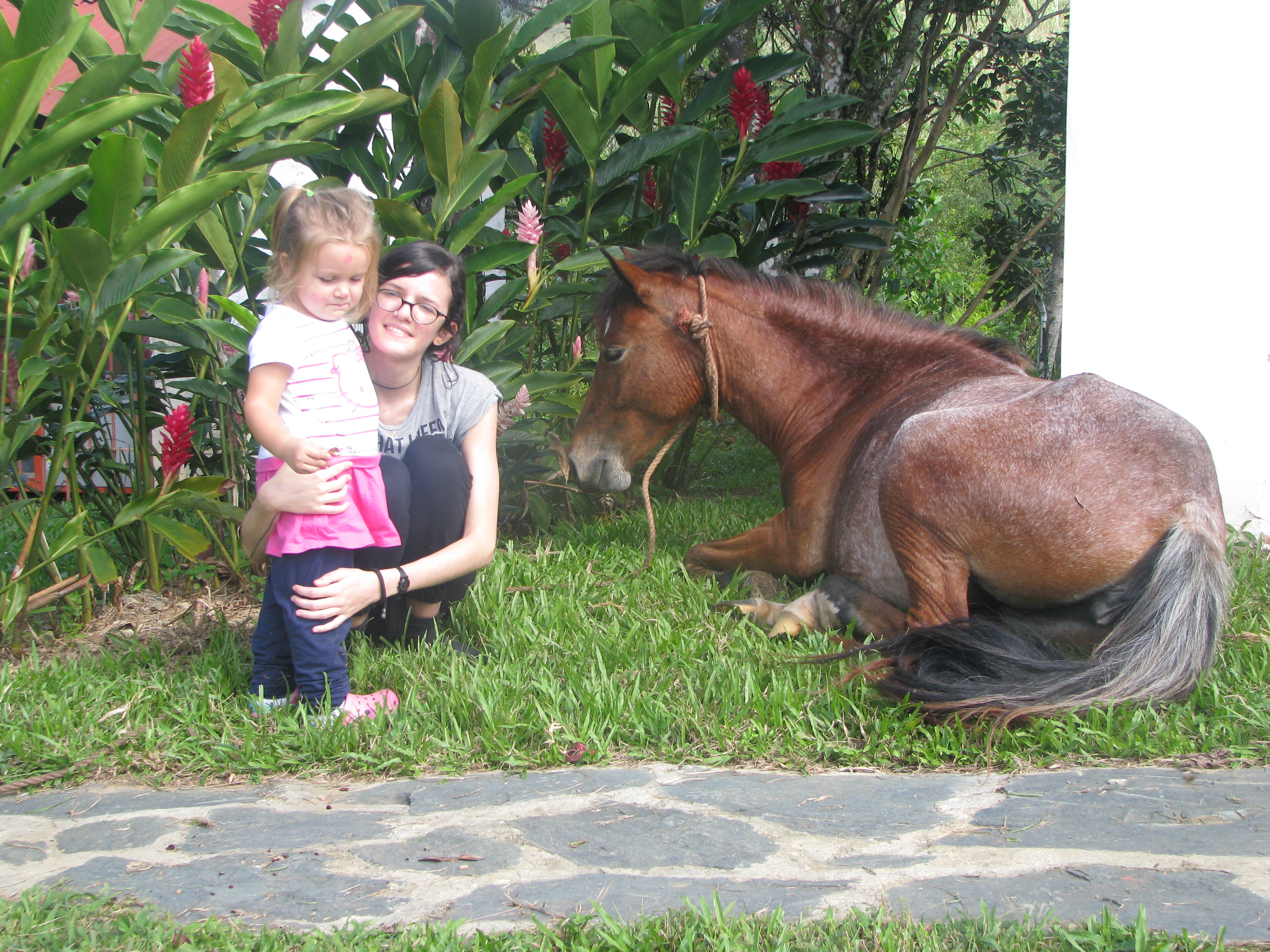 Over the holiday week, our family enjoyed hanging out at our home in the farm with Jose and Katiuska, many of their relatives, and other group members came out from the city. You can see Isabella here, who has the magical quality of bringing calm and joy to animals and young children, both. She is hugging – cuddling! – Luna the horse in this photo, yes, Luna, who is not always The Most Cuddly Horse I’ve Ever Met! Luna is completely relaxed with Isabella, one of Katiuska and Jose’s daughters who is also a group member.
